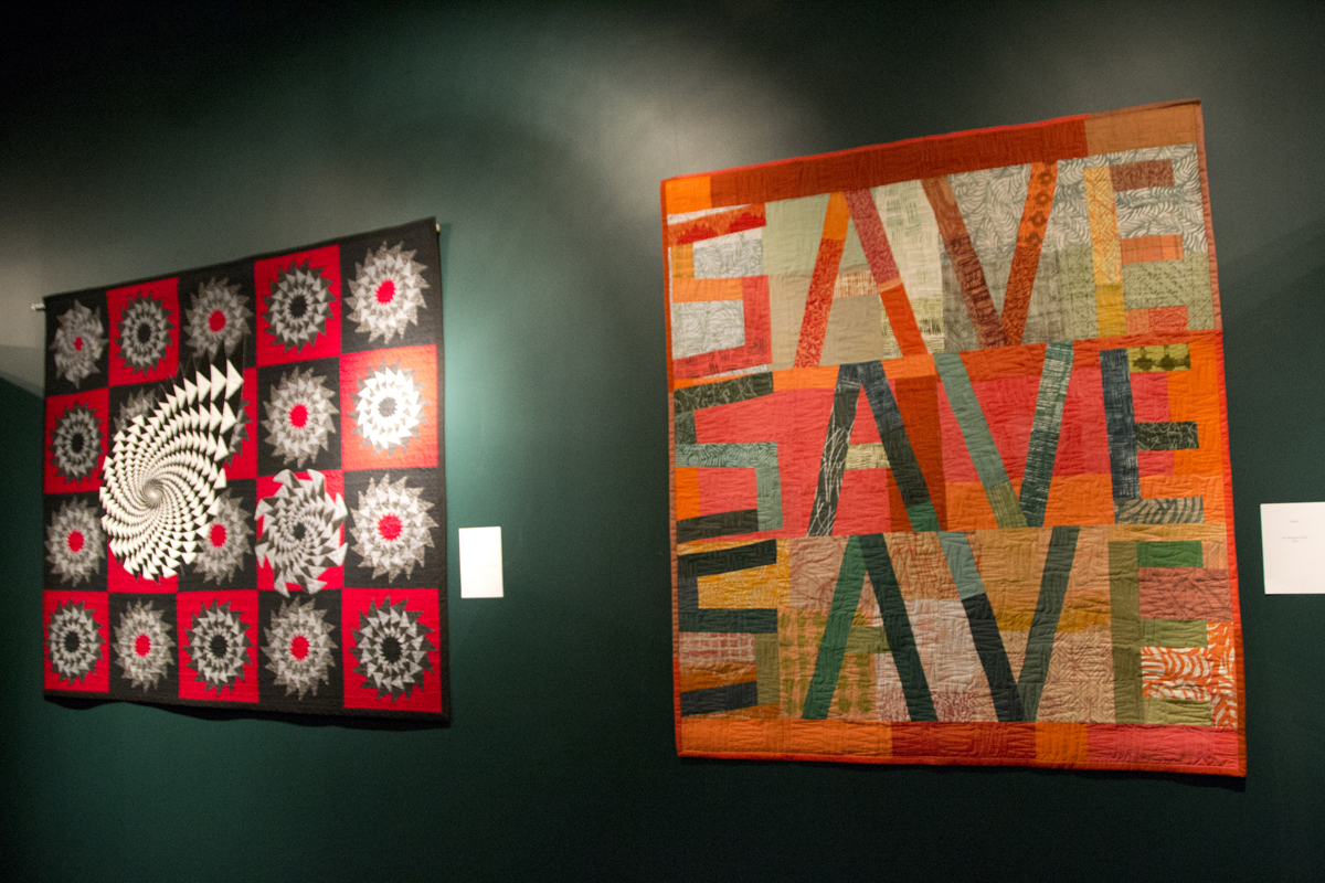 Helen Remick’s “Spinning Out, Spinning In 1” (left) and Margaret Liston’s “Save” (right) |