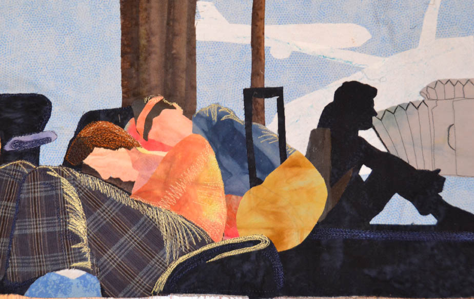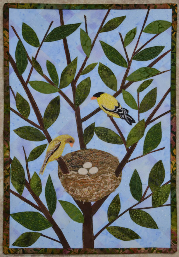 On Saturday, we pick up the pieces at our CQA meeting. We’re working on figuring out a way to best hang the works… the gallery has a wire hanging system. At this point, we’re planning on using a heavy-duty fishing line to attach the quilts and art cloth from the wire. However, we will need to tie the fishing line onto all the hanging sticks and haven’t fully worked out how we will adjust the length of the fishing line to make sure each piece is at the right level and even. My husband and I have even gone to a couple hardware stores to try and see if there was some sort of hardware that we could put the line through and pull it and it would catch and not slip. At this point, it looks like we’re going to just be adjusting it by hand and tying it off.