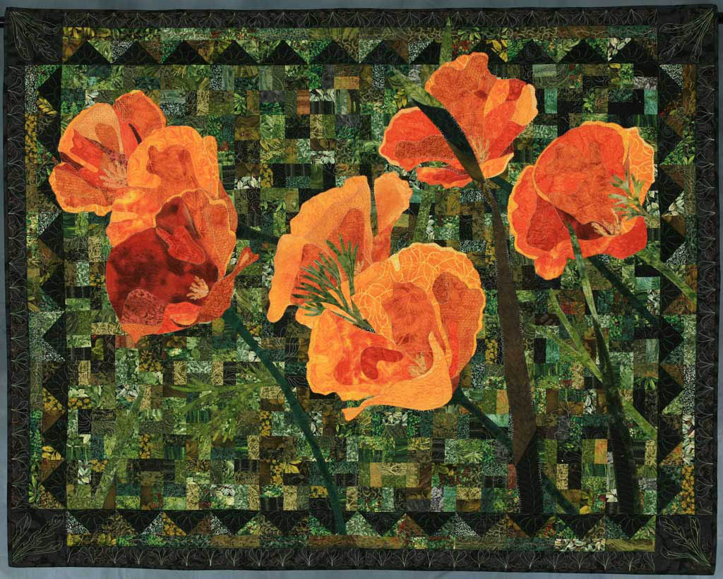 Audrey’s start in textiles began ten years after completing her degree in fine art (mainly portrait painting), after seeing an exhibit of fabric collages by Margaret Kaye (1912-2002). Prior to that , Audrey associated embroidery with the domestic textiles of her youth. Rather than continuing on as a painter, textiles became Audrey’s medium of choice. She even incorporated some of her family’s domestic textiles into her artwork, giving a nod of recognition to the historic roots of embroidery.