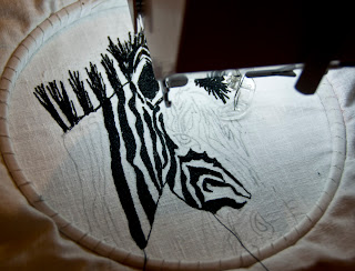 Well, I’ve made the commitment and have extended the invitation and I hope you’ll join me in going for the challenge! I admit I’m a little ahead, as I started my first week’s piece back in early December. I finished up my freehand machine embroidered Zebra over the holidays and today I spent my studio time making a “pillowcase binding”, practicing micro-stippling, and starting the quilting for the piece.