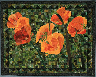 | The background of these poppies is pieced with a traditional feel Artist unknown |