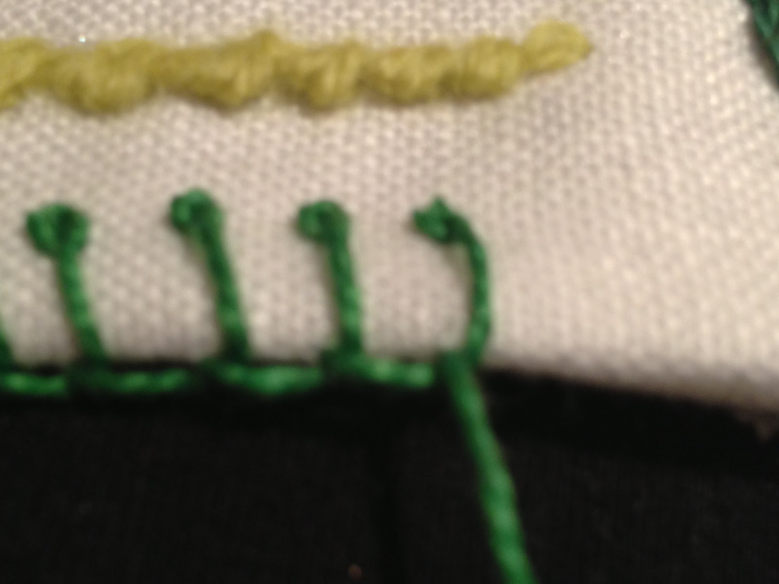 Since I always like to keep my hands busy, I’m working on an edging stitch for one of my embroidery samplers. I decided to do a Knotted Blanket Stitch, which I’ll show how to do here: